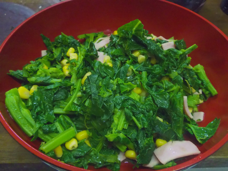 菜バナとベーコン・コーンの炒め物。